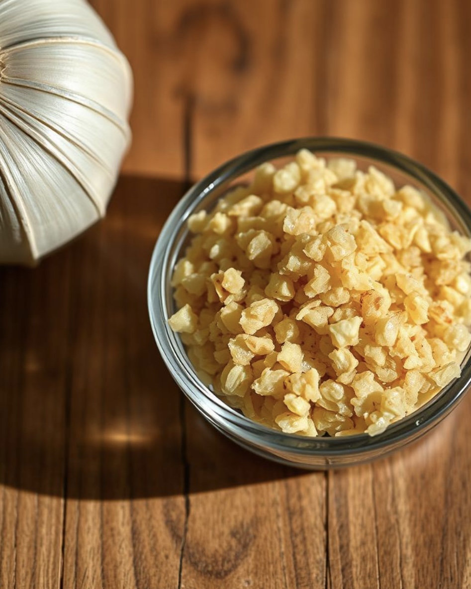 • برای طعم شدیدتر، گرانول سیر را در روغن داغ تفت دهید تا عطر آن آزاد شود.