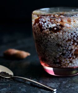 دانه های چیا را به نسبت 1:10 در آب خیس کنید، یعنی 1.5 قاشق غذاخوری دانه چیا در یک فنجان آب، بگذارید حدود 30 دقیقه تا دو ساعت بمانند تا خوب لعاب آن ها در بیاید و سپس آن را در آبمیوه ها استفاده کنید.